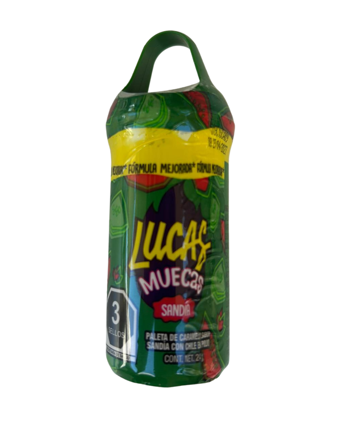 Prodotto: Lucas Muecas Sandía è una caramella in polvere/pasta acida al gusto di anguria, spesso venduta con un leccalecca per essere intinto nella polvere.