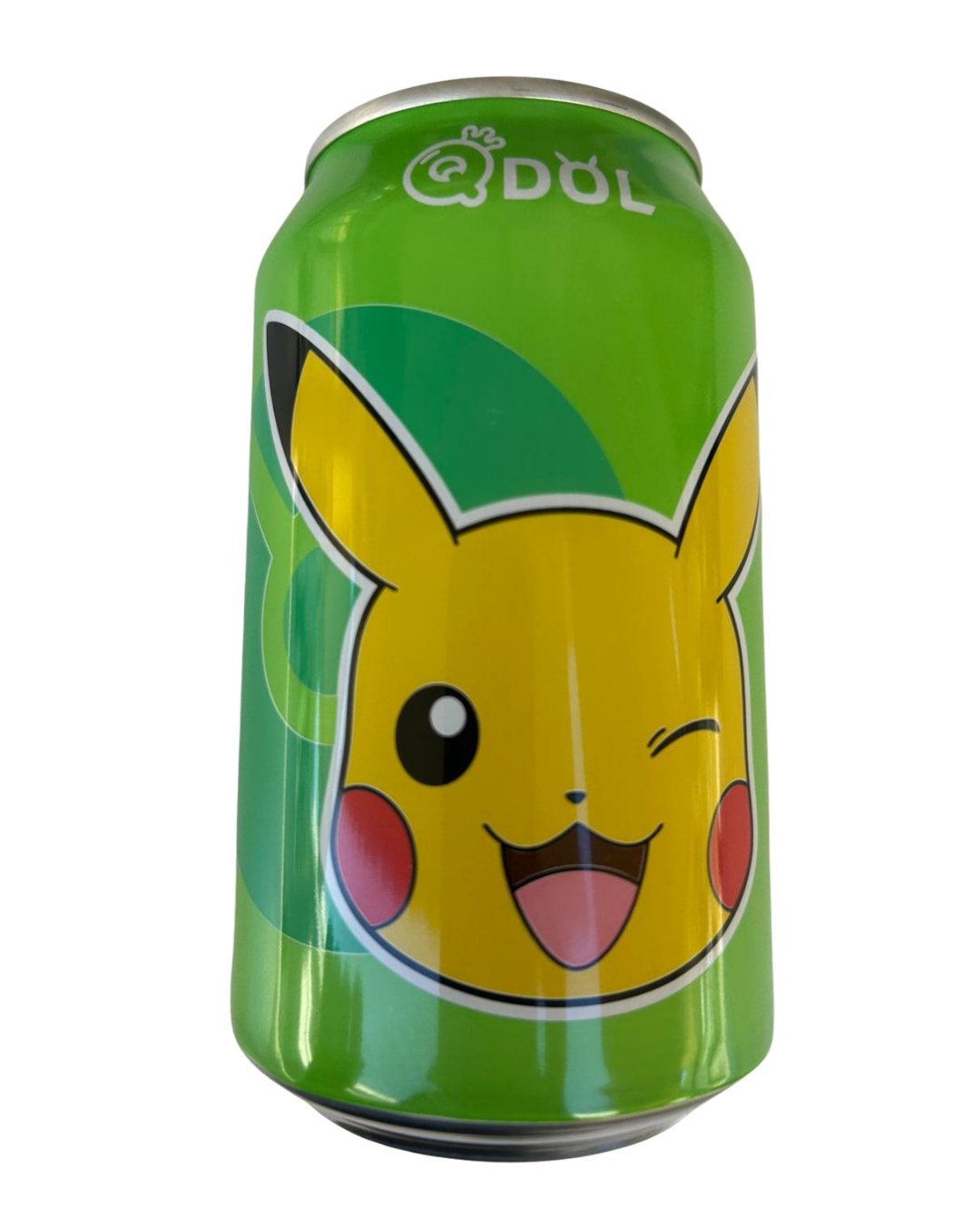Prodotto: Bevanda analcolica a tema Pokémon Pikachu, generalmente una bibita dolce frizzante in lattina o bottiglia con grafica del personaggio Pikachu.